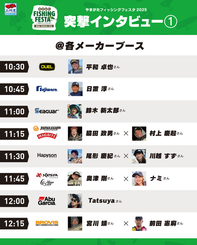 ※上記来場ゲストアングラーは本ページ更新日時時点の情報です。都合により変更を伴う場合がございますので予めご了承下さい。