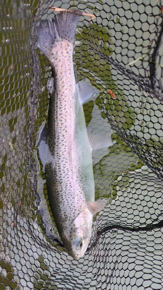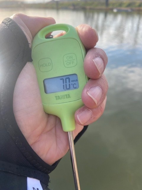 このタイミングで水車横の流れ込みで釣っていた関店の齊藤店長に大型がヒット!これを無事釣り上げて、大型を釣るという2号池のミッション完了。