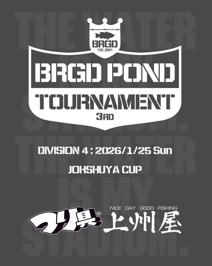 「BRGDPONDTOURNAMENT3rdDivision4上州屋カップ」が開催されます。皆様のご参加とご活躍を心より楽しみにしております!