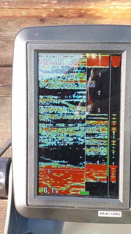 当初桟橋釣り予定でしたが当日の天気予報だと8:00頃から風速7mの風が吹く感じだったので急遽ドーム桟橋に入りました。2号ドームはほぼ満席だったので1号ドームに入りました、釣り座は右舷側の一番先端で水深6.1m。朝一番は群れの反応が中層に浮いてしまい釣りづらい状況でしたが8:00頃になると魚の反応が底付近に集まり始め10:30になっても群れは消えず飽きない程度にアタリが続きました。