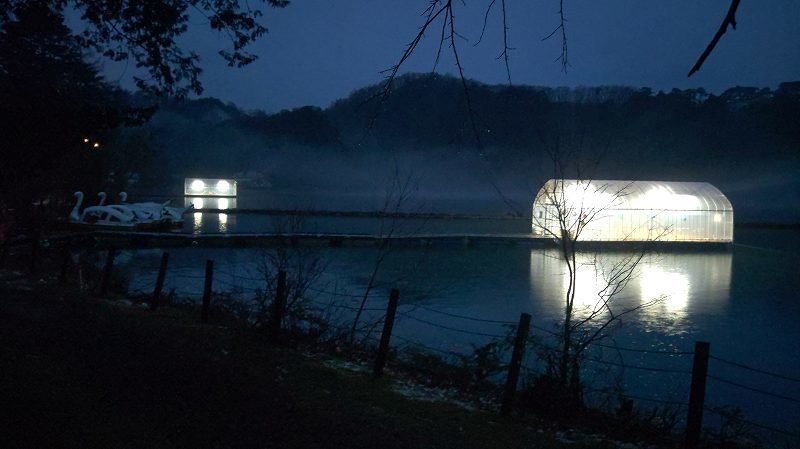 一般の釣り桟橋は周りが結氷しており朝一番は金属の棒やハンドドリルが無いと穴が開きませんのでご注意ください。
