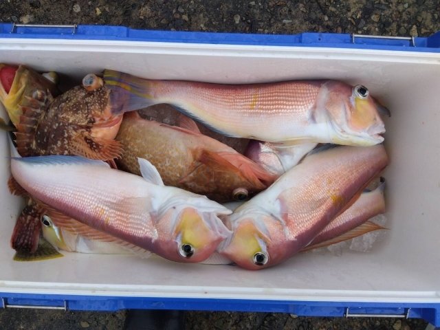 他、アオハタ・カサゴ・キジハタ、水深の深いところではマダイなども顔を見せます。