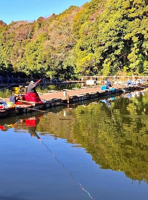 遅ればせながら2026初釣行は【清遊湖】さんへ。釣友と2人で並んで中央桟橋ヤグラの先北桟橋向きに入釣。12尺チョーチンからスタートしました。朝のアタリ出しは早く、難なく1枚GET。その後カラツンが続き、ハリスやハリ、エサのタッチの調整です。今までカラツンになってたアタリが、ハリのサイズやバラケのタッチを変えるとしっかり喰ってくるから不思議です。釣友の19.5尺沖宙も安定して絞っていました。ややタナをとった釣り方が良いようです。10時過ぎから11尺に変更しましたが、このタナもアタリは多く楽しめました。1月になり水温、気温共下がって、各池さんの釣況もなかなかに厳しい状況になってきましたが、清遊湖さんは安定のコンディションのご様子。周囲の常連さんは『段底』で楽しむ方が多く見受けられました。