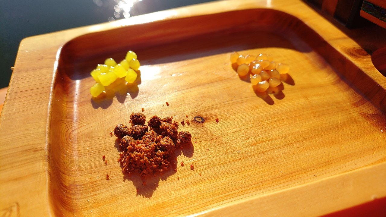 ■釣り方:段差の底釣り ■竿:ヤマサ 別作 宗春 8.0尺 ■浮子:水峯 圭造 スペシャル底 PC 8番(3→5目沈め) ■道糸:サンライン 奏 0.8号 ■ハリス:㊤:ダン へらハリス 0.5号/10CM ㊦:ダン へらハリス 0.3号/40CM ■ハリ:㊤:ハヤブサ 鬼掛け 極ヤラズ 7号 ㊦:ハヤブサ 鬼掛け 喰わせヒネリ 3号 ■エサ:バラケ マルキユー ① 粒戦100+粒戦 細粒50+水150 吸水放置後 ヤグラ150+BBフラッシュ50 ② 粒戦100+水150 吸水放置後 ヤグラ200+BBフラッシュ100 を5指で良くかき混ぜる。 手水と基エサで調整とエサの大きさ/エサ付け/BBフラッシュ(パラパラ差す)等でナジミ幅を調整コントロールする。 クワセ マルキユー 力玉ハードⅡ/力玉 大粒 改/さなぎ玉。 ■飯:《㊥昼飯》 教育中のれおさんからの頂いた春雨ヌードル。 ※詳しくは㊥まで。 《㊥達合流飯》 焼肉 たくぞうの台所 ※詳しくは㊥まで。