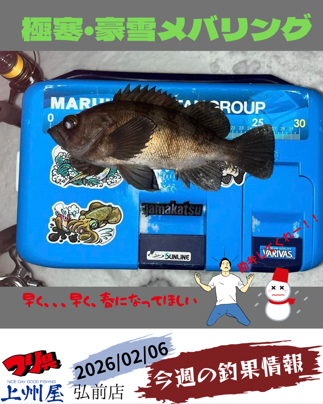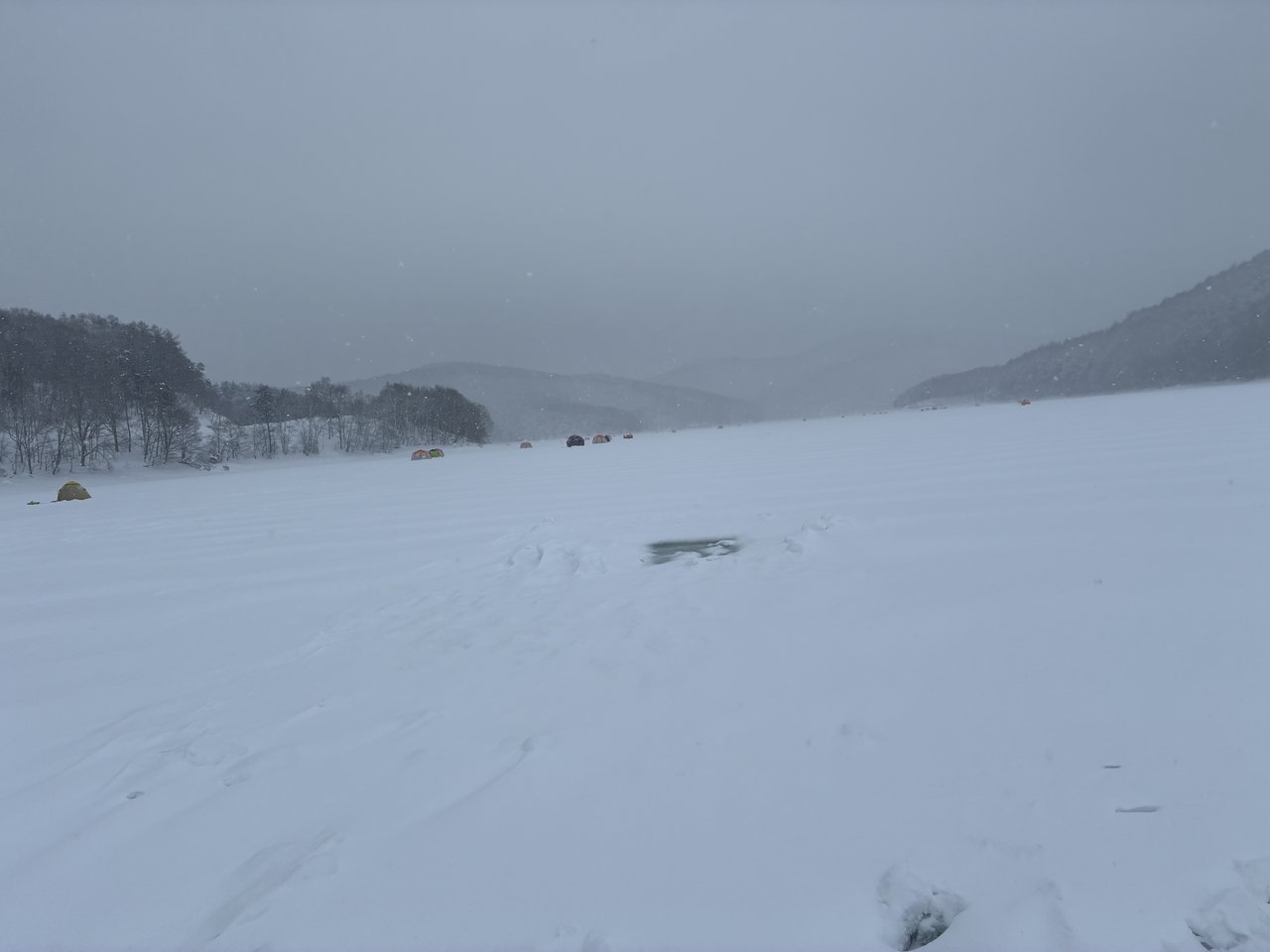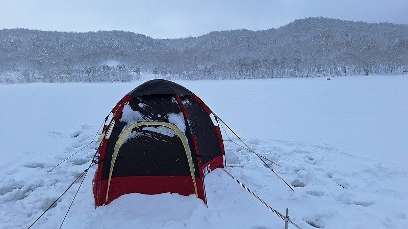 ワラビは湖面状況変わらずズボベチャ状態。雪を踏み固めてテントを張った方が良いのと水が浮くので厚めの発泡を持っていく方が良いですよ。明日は荒天が予想されます。テントは締め切らずに少し開け必ず喚起をして下さい。事故の無いよう釣行して下さい。