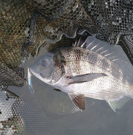 年々釣れる時期が早まってきているクロダイの状況調査メインで、AM11:30釣場着。下げ止まりまでの時合い狙いです。この時期のデイゲームで釣れたことはないので、アタリサワリでもあればいいな~くらいで釣りしていましたが、バイブレーションからIJ-16にローテしたほんの数投目に、ドーンとビッグバイト!デカめのクロダイかなと思ったらデカいシーバスでした!で、シーバスリリース後の1投目、手前のゴロタ石ゾーンで連続のバイト!30後半のクロダイが釣れました!ヒットルアーは同じIJ-16.その後もルアーにはクロダイのショートバイトと思われるウロコ掛かりが何度かありましたがヒットせず、時合い終了。予想外の釣果で楽しめました!これから水温が上がっていくにつれてクロダイの活性は高くなっていきます。もう釣れるシーズンなのかもしれません。近々また行ってきます。