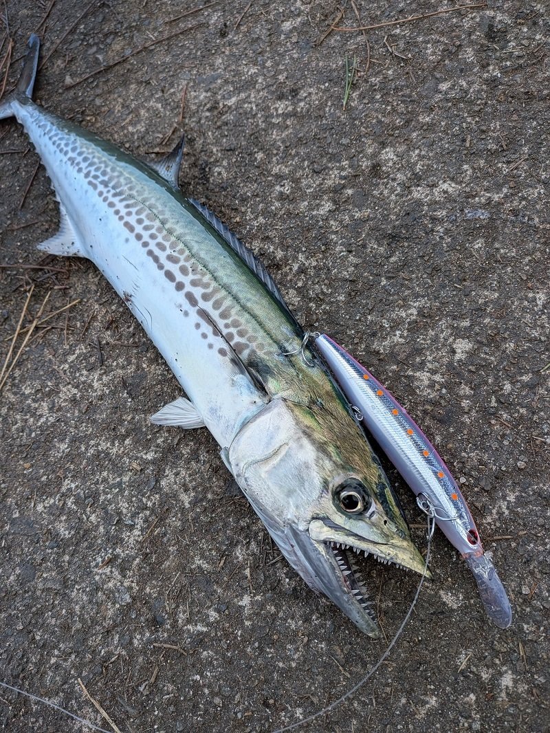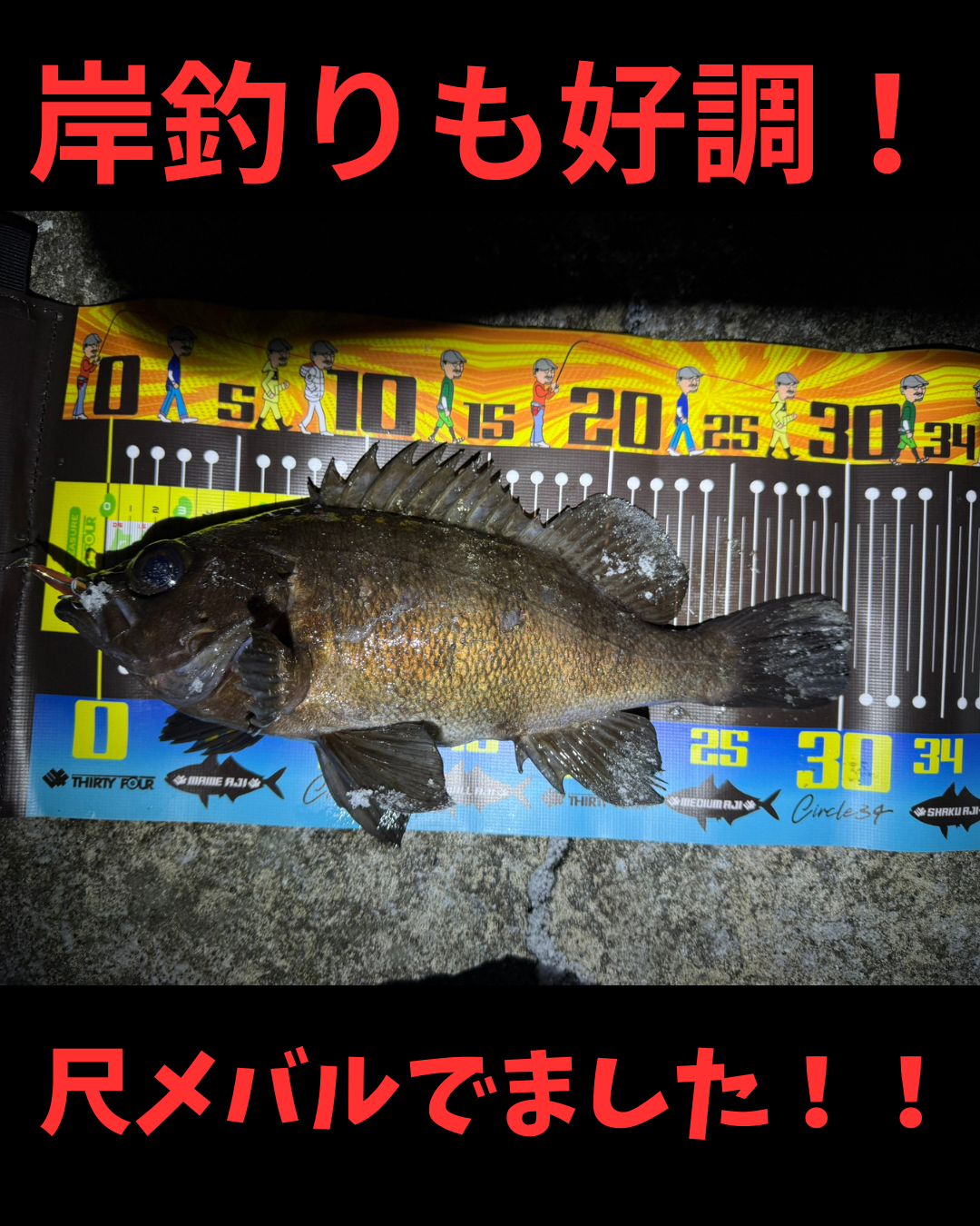 先日は夜中にメバル狙いに出撃したそうですが本命こそ出なかったものの、スミスのスタイラー51Fでスリットを狙ったら一発ヒット♪