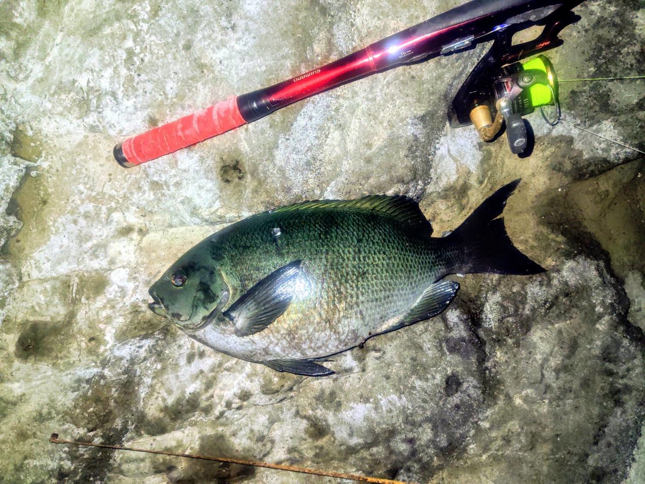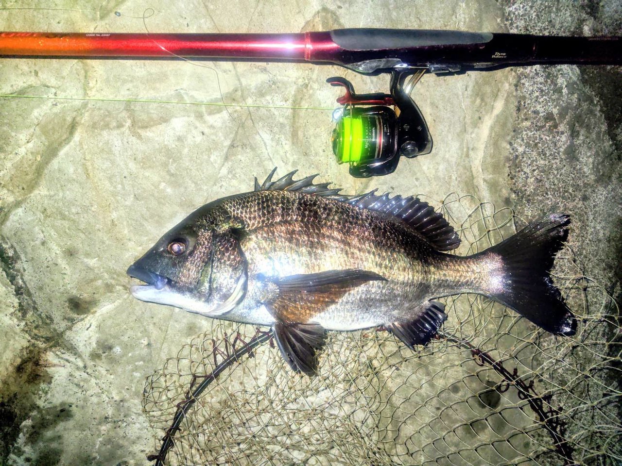 昨日も城ヶ島は変なウネリが入っていたので、前回ビッグムラソイを仕留めた三浦東部の磯へ行って来たそうです。16時30分から開始すると、明るい時間帯にクロダイ39センチがヒット♪
