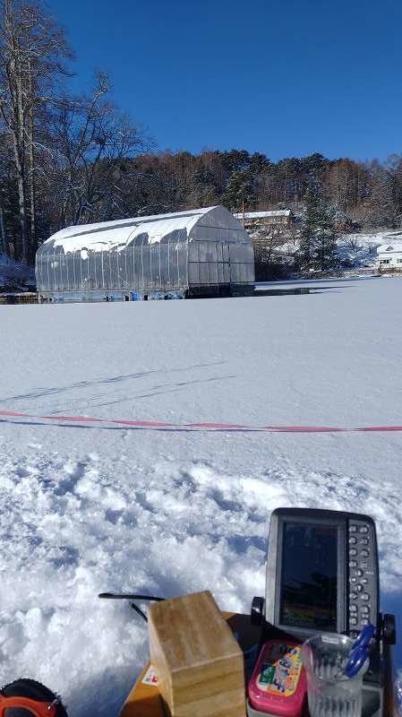 魚探も使用せず適当に空けた穴でも60匹釣れるんで今年の岩洞湖の魚影は濃いですね。まだまだ氷は厚いのでしばらくは安心して釣りができそうです。