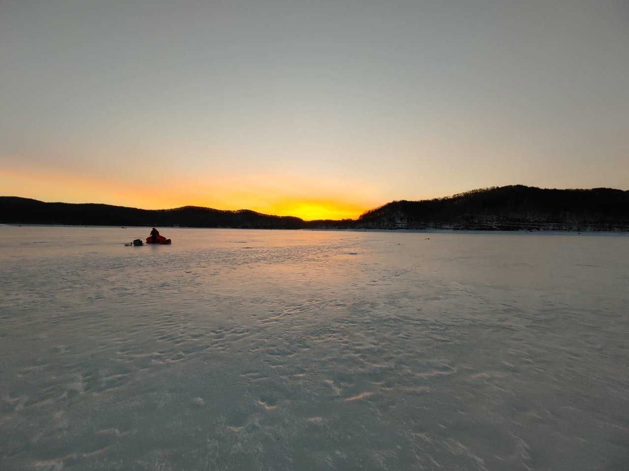 氷の厚さはまだまだ十分で、岸際も割れてないので、あともう少し氷上ワカサギが楽しめそうですよ(^^)/