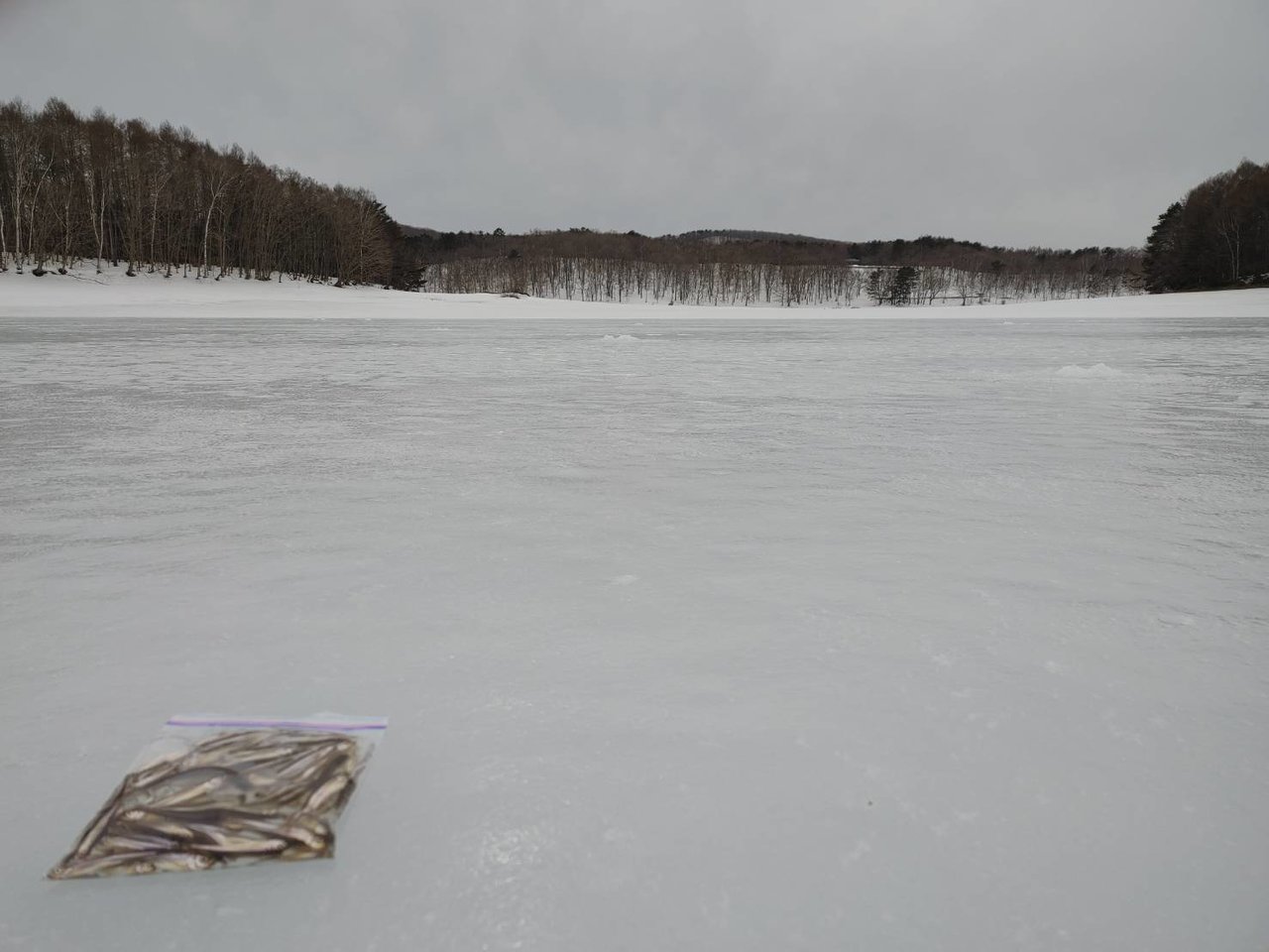 雨が降ったら終わりそうな岩洞湖へ。いつ最後になるかわからないので悔いが残らないように来年も成立するか分からない浅場に。今回はしっかり釣りこむ気持ちで6時に氷上に。しかし前々回の場所に行ってみるも反応が無く26発穴開けしてやっと3列で入る穴を発見。釣り開始は7:19で最初の1時間で108匹釣れます。以降1時間毎に186→264→338→434→560となり、まだまだ反応好調で入れれば釣れる状態でしたが満足したので13時半終了しました。11時過ぎから尻上がりに釣果が伸びる良い穴でした。