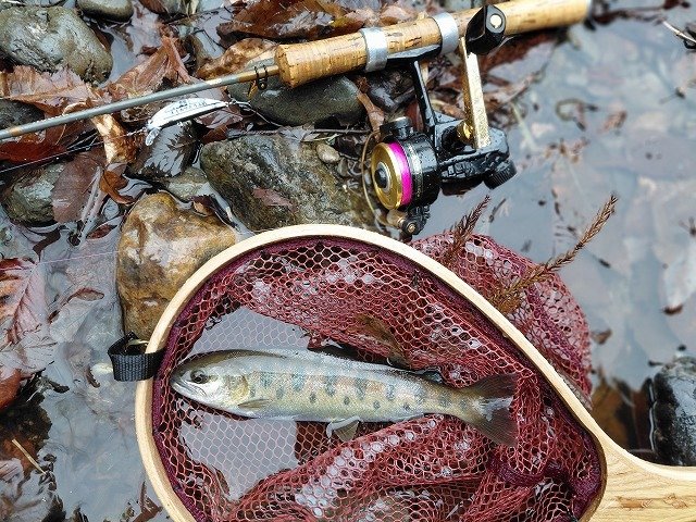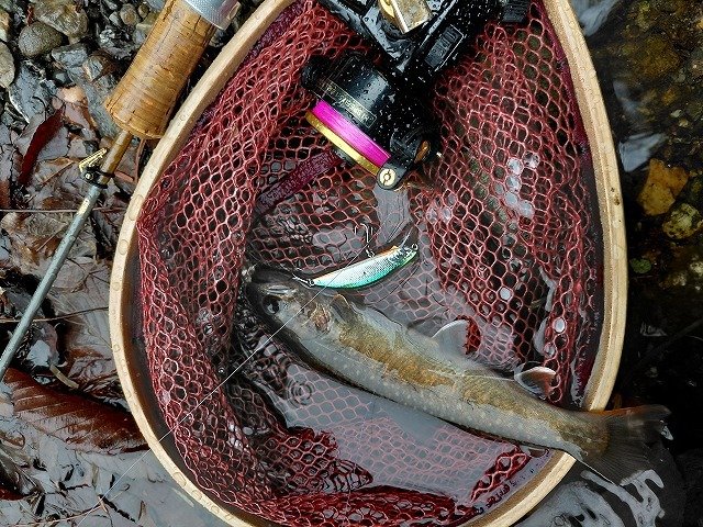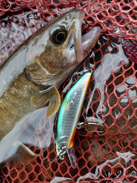 ■ロッド:エムアイレ正影ボロン ■リール:カーディナル ■ライン:ファメルストロングスーパーナイロン0.8号 バリバストゥイッチマスター4LB ■ルアー:マスラオ50S上州屋伊勢崎店オリカラ 利根鱒 上州コパーレイス オイカワとうふ店 ■漁協:上野村漁協