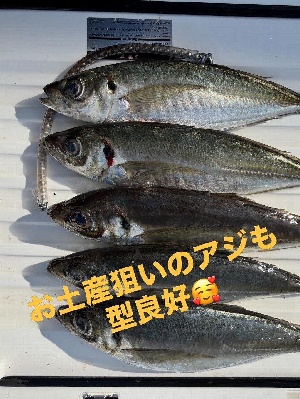 この日の前半はアジがご機嫌ナナメでツ抜けできるか心配になりましたが、後半は26cm位のサイズが喰いだしてきました。釣り方はライン引き釣法よりも、ノーマル釣法で棚に合わせて少し待つと喰ってくる感じでした。私はビシ着底後に1m巻き上げコマセを2~3回撒きながら底から2m~2.5mに合わせると釣れました。活性が上がった時はライン引きを試みてみると喰ってきました。状況に合わせてパターンを変えていくと面白いと思います。