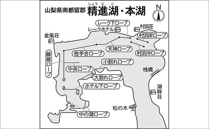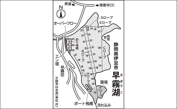 ■竿:12尺、11尺 ■浮子:旭舟 ボディ5.5㎝~7㎝ PCムク、グラスムク ■道糸:0.6号(サンライン パワードへら道糸 奏) ■ハリス:上0.5号(東レ 将鱗へらハリスタイプⅡ)8㎝ 下0.3号(サンライン パワードへらハリス 奏)40~60㎝ ■ハリ:上バラサ6号(オーナーばり) 下S-プロスト1号、サスケ3号 ■エサ:粒戦200㏄+瀑麩100㏄+水230cc+ふぶき100㏄ BBフラッシュやカクシン、手水でタッチを調整 クワセエサは感嘆と力玉