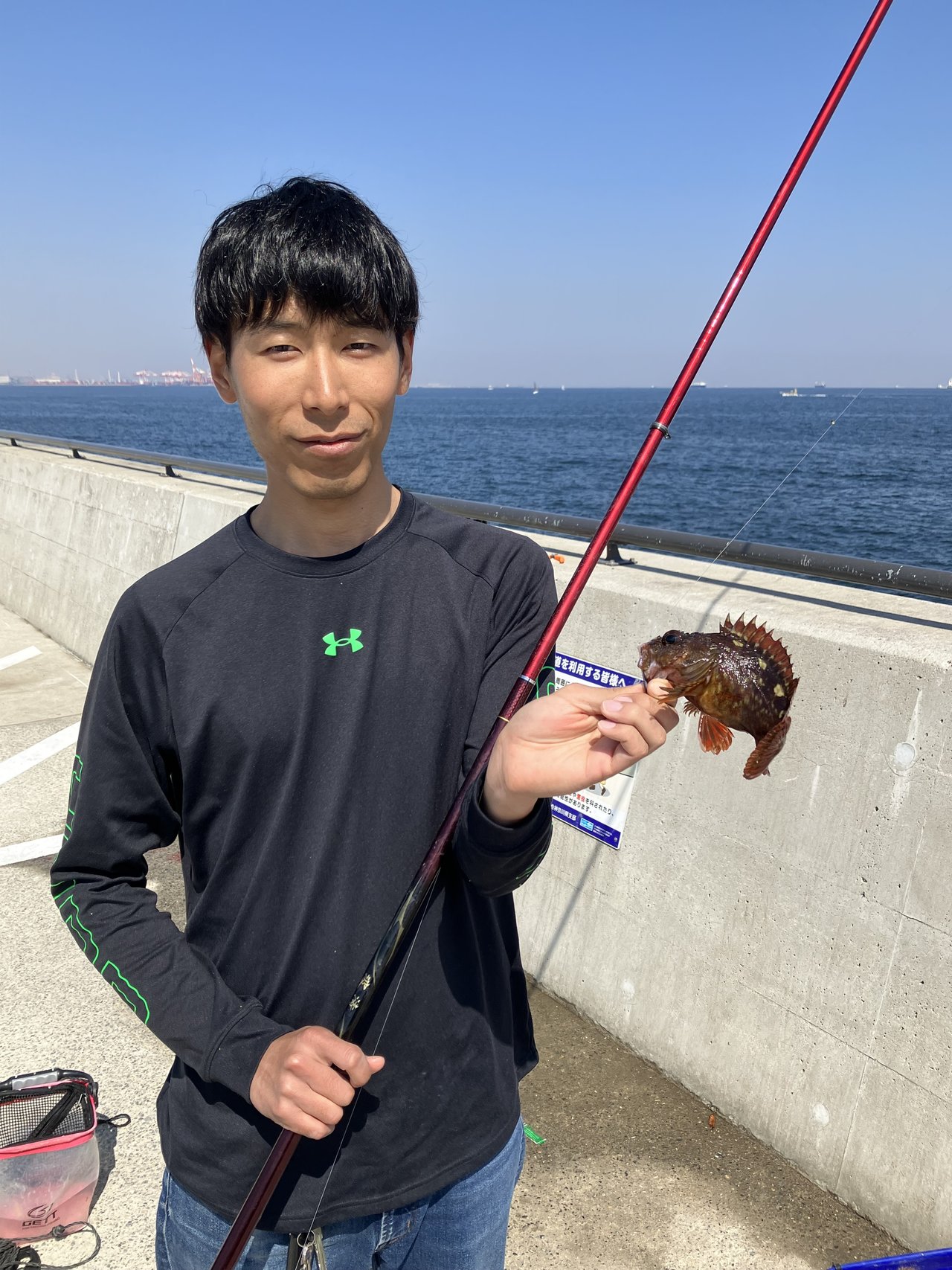 3連休真ん中の土曜日と言う事で、9時に到着したころにはほぼ釣り座が埋まっていましたが・・なんとか3人入れる場所を探して釣り開始♪