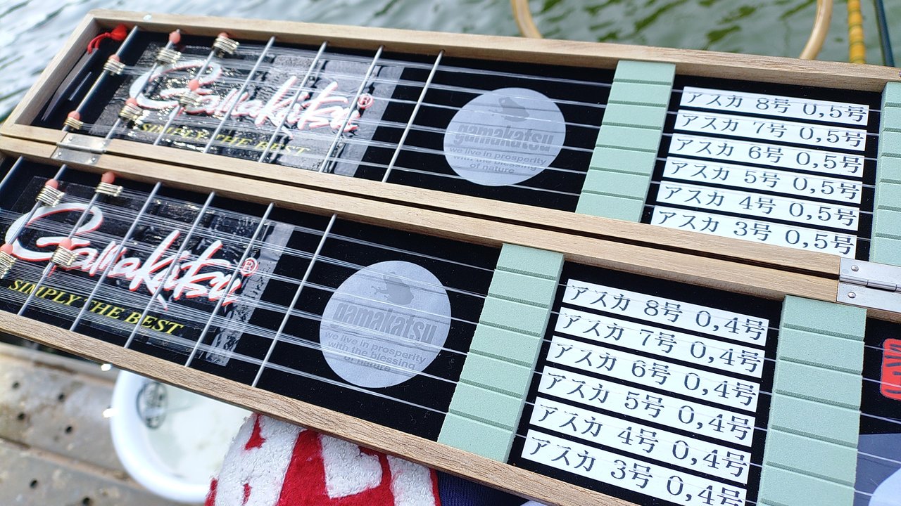 ■ロッド:カワハギ竿 ■リール:手巻き両軸 ■ライン:PE1号+リーダー4号 ■仕掛け:喰わせ仕掛け40号 ■エサ:アルゼンチン赤エビ