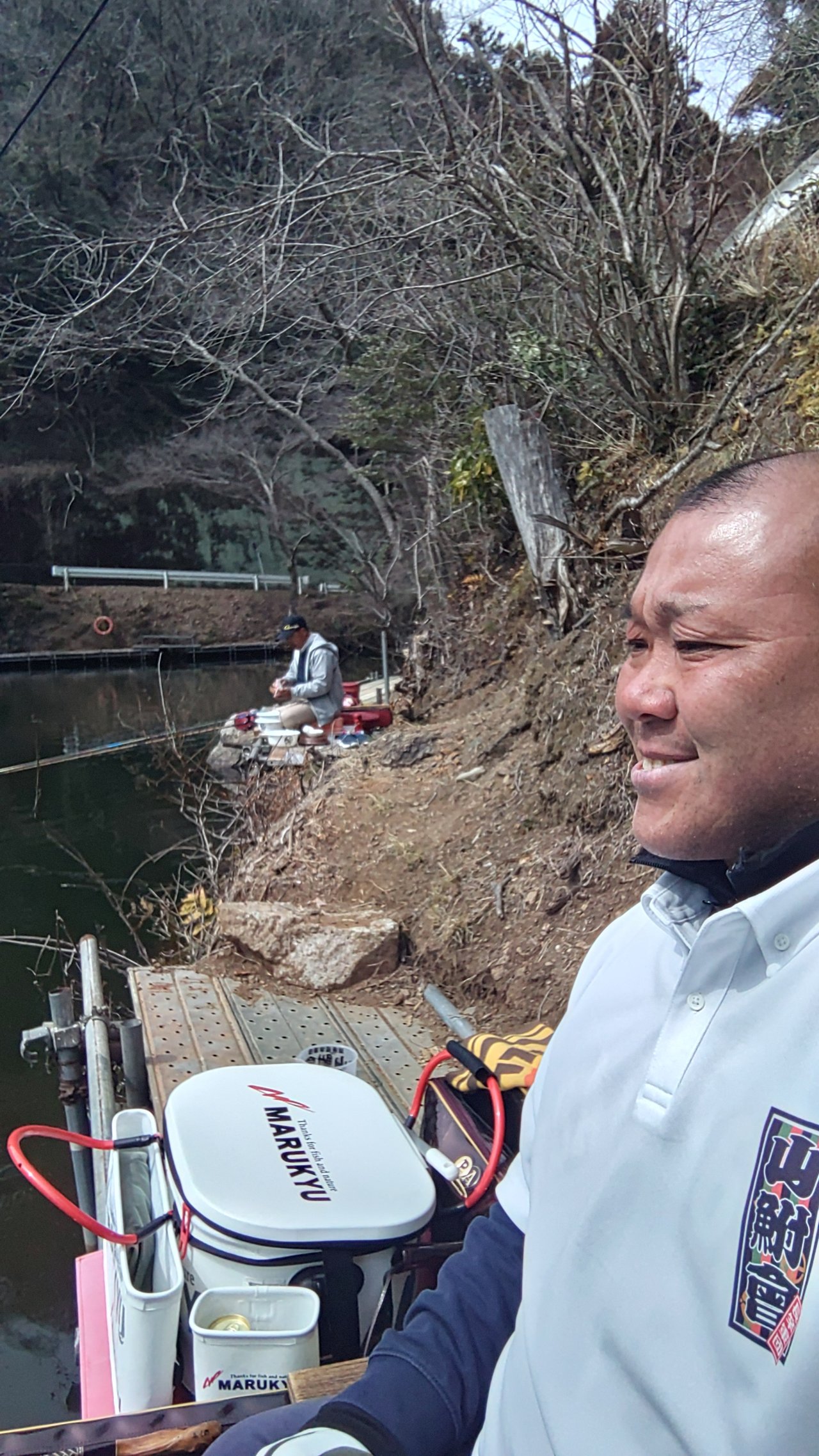 午前中、最初のポイントでは型が良く、自分と大雅君以外は好調...。隣のM様は二匹掛けも...。