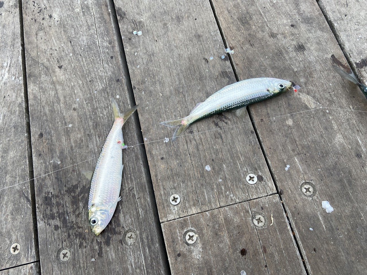 自分は良型六匹と良型のサバ二匹...。大雅君はアジとイシモチの二匹...。