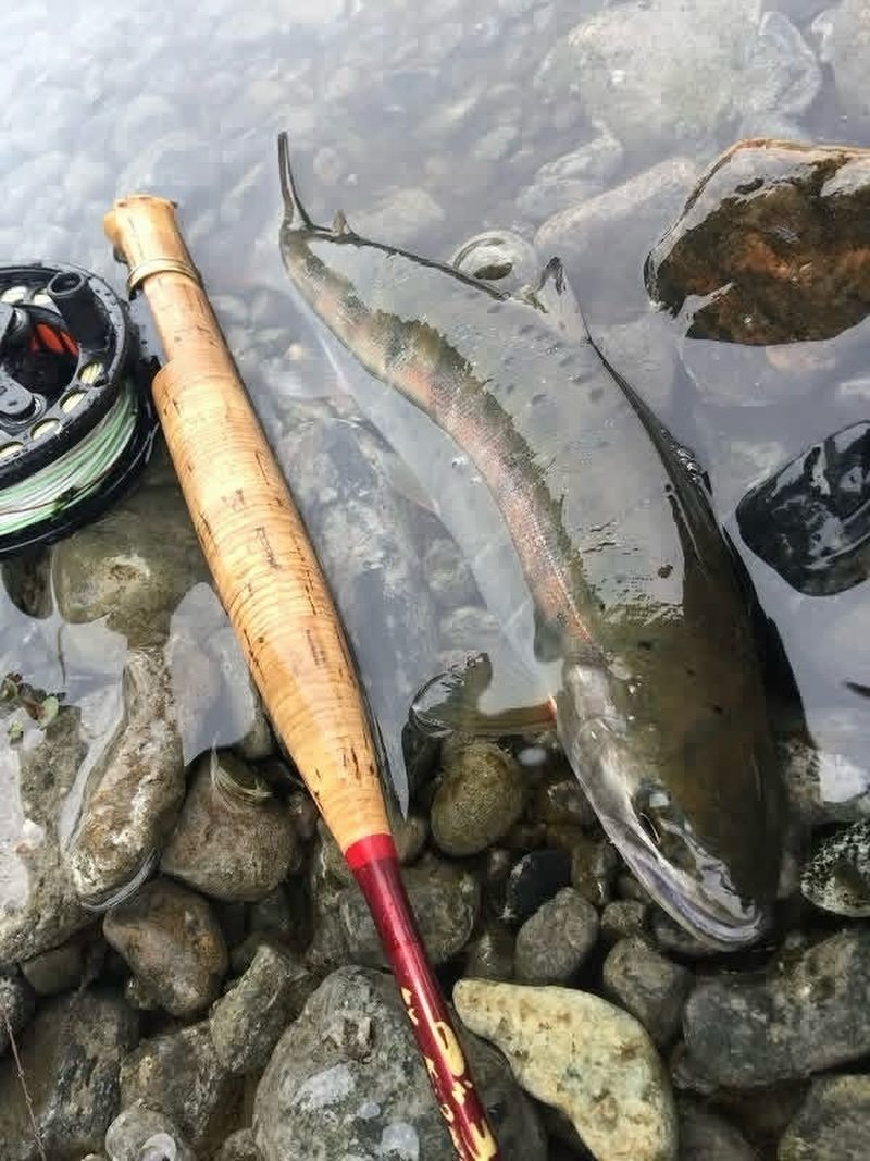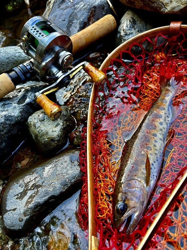 まずは片天と両天仕掛けと別れて釣りを開始、今日はどちらが喰いが良いか試してみます。始めに入ったポイントで片天仕掛けを使っていたお客様だけにアタリがあったので仕掛けをチェンジ。朝一ポツポツと上がり始め良い感じに思えましたが、雪代が入っていた様でその後はアタリも遠い状況。船頭さんも色々と場所移動してくれますが厳しい状況が続きます。