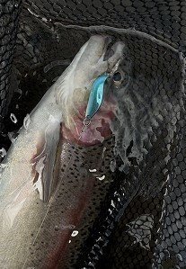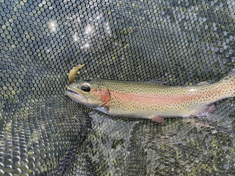 またまた当店お客様より釣果情報です♪清野様が拘りのタックルでグッドコンディションなレインボートラウトをキャッチ!!朝マズメ勝負のプライムタイムをトップ系ミノーで見事モノにしました♪シャローゲームでの水面炸裂は最高に興奮しますね!清野様の情報ではシャローに差している魚で気配はムンムンとの事!これは近々に釣行したくなってしまいますね♪清野様ありがとうございました~