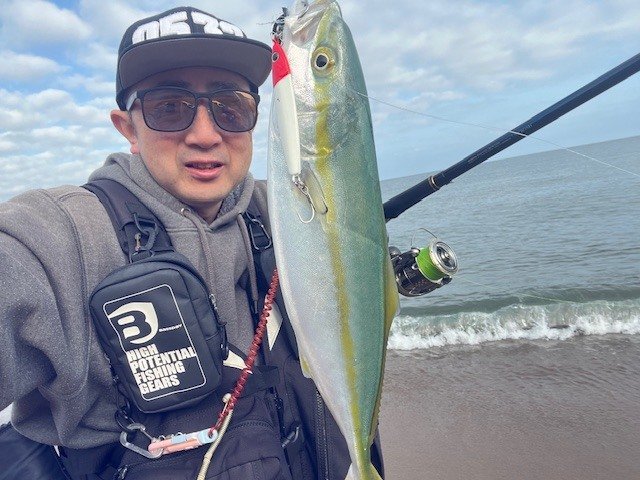 新福井店から車で約40分のサーフへ行って来ました。朝の気温8℃。波は無く濁りは少しありました。ベイトの気配が無く移動しようと思ったらヒット!波がない日中は潮目が大事!556glassのお陰でハッキリ見えました。早朝は沢山釣れていた様です。