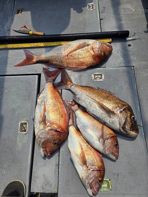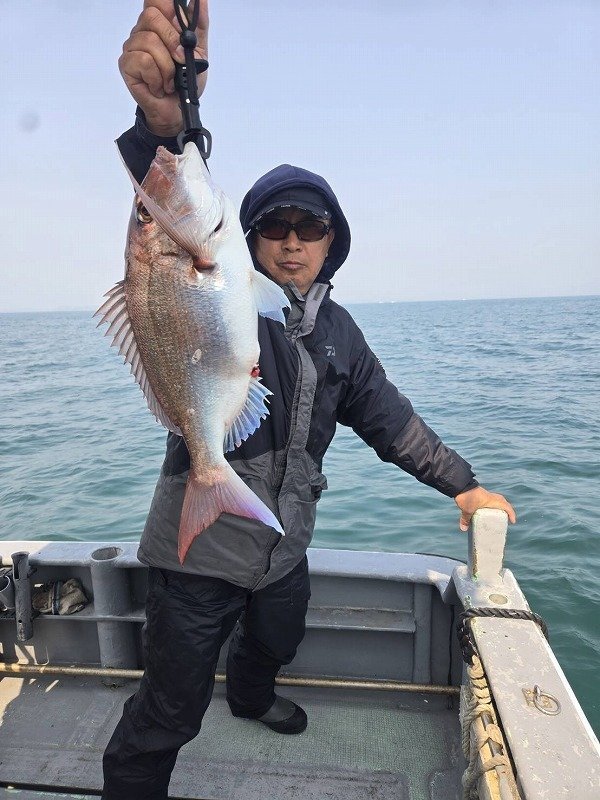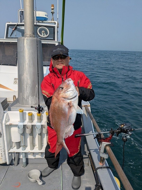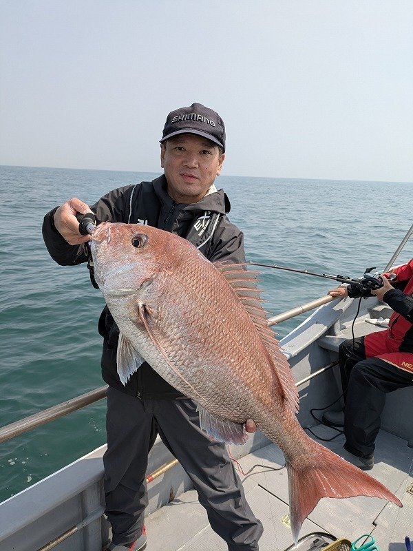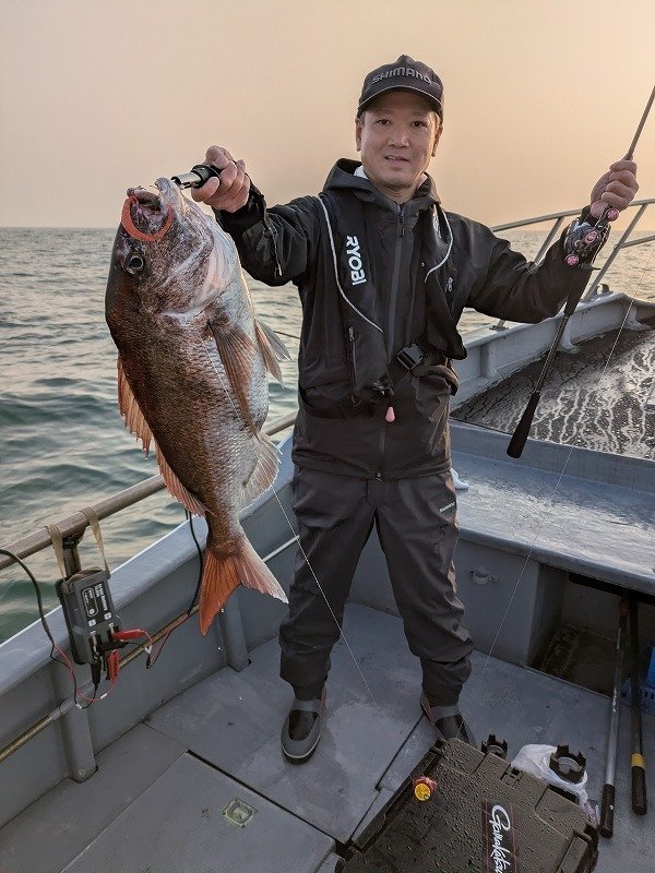 今年は真鯛のアタリ年!?各地で真鯛が絶好調です!そこで乗っ込み真鯛狙いに〝春夏丸さん〟へタイラバに行ってきました!水深80~95mだったので100gのヘッドからスタート!ここは2/10の当店釣果情報で前田様が60オーバーを4枚上げたポイントと船長に教えてもらい期待特大です!2投目から良型の真鯛がヒット!1匹目だったのでゆっくり時間を掛けて寄せてきます。上がってきたのは60オーバーの乗っ込みカラーの雄。前田様ポイント60オーバーの真鯛湧いとるなぁ~!!!と船上で盛り上がります。その後、同じポイントを流し、M(前田様)ポイントに上手く入ると誰かが当たる!ただバレるを繰り返し、なかなか釣り上げる事ができませんでした。船長がポイントをいろいろ探ってくれましたが不発。またMポイントへ戻り残りの時間を楽しみました。当日は真鯛の活性が低いのか掛かってもバレるの繰返しでした。ダブルヒット!!ダブル針外れ!!!も数回ありました…。一気に20m以上ドラグが出た大型真鯛もバラすなど当たりの数は多くタイラバを楽しむことができました。当日は100~150gを使用しましたが風と潮が逆、強風時は200g以上も必要です。ヘッドの重さは多めに用意して下さいね!春夏丸さんでは港に帰ってきてから血抜き、神経締めをしていただけるので鮮度の良い状態で魚を持って帰ることができますよ~。ベテラン船長が釣り、仕掛のアドバイスもしていただけるのでタイラバ入門希望の方でも安心して釣りを楽しむことができますよ~。
