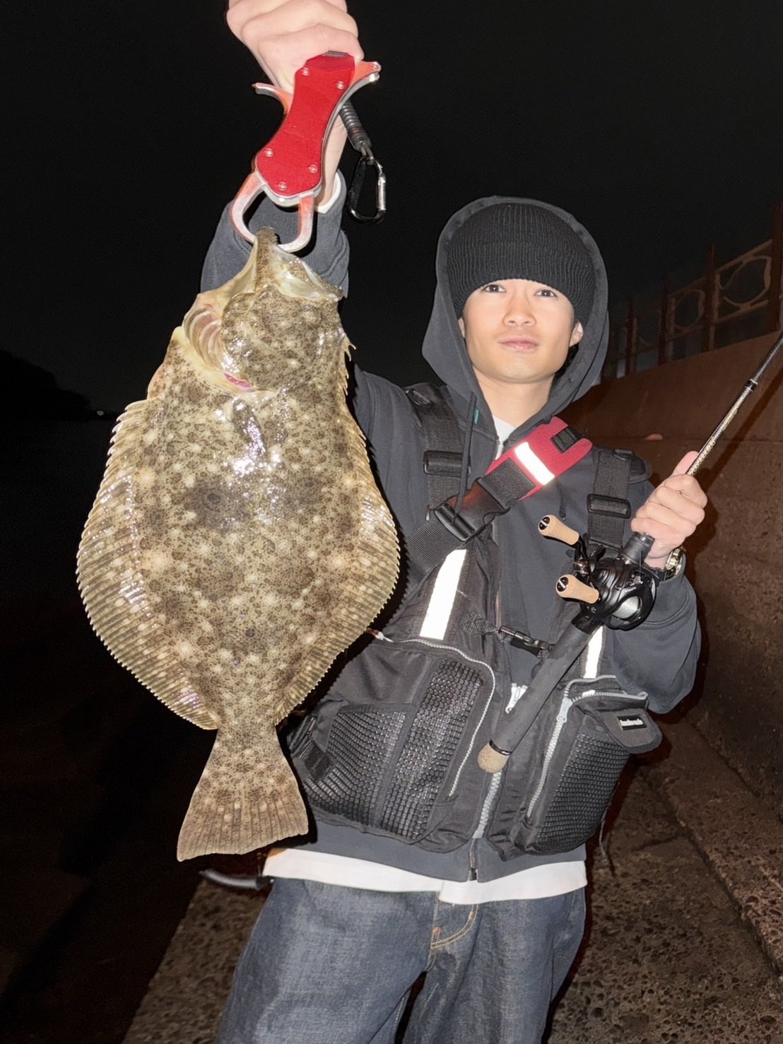 海釣り二回目で初めての魚がまさかのヒラメ♪自分が釣るより嬉しかったです(*´艸`)