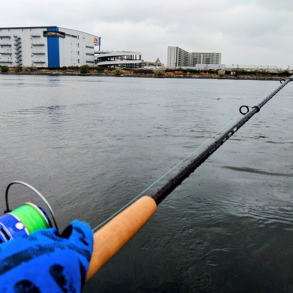 雨の中、自転車で近くの釣り場へ行きました。