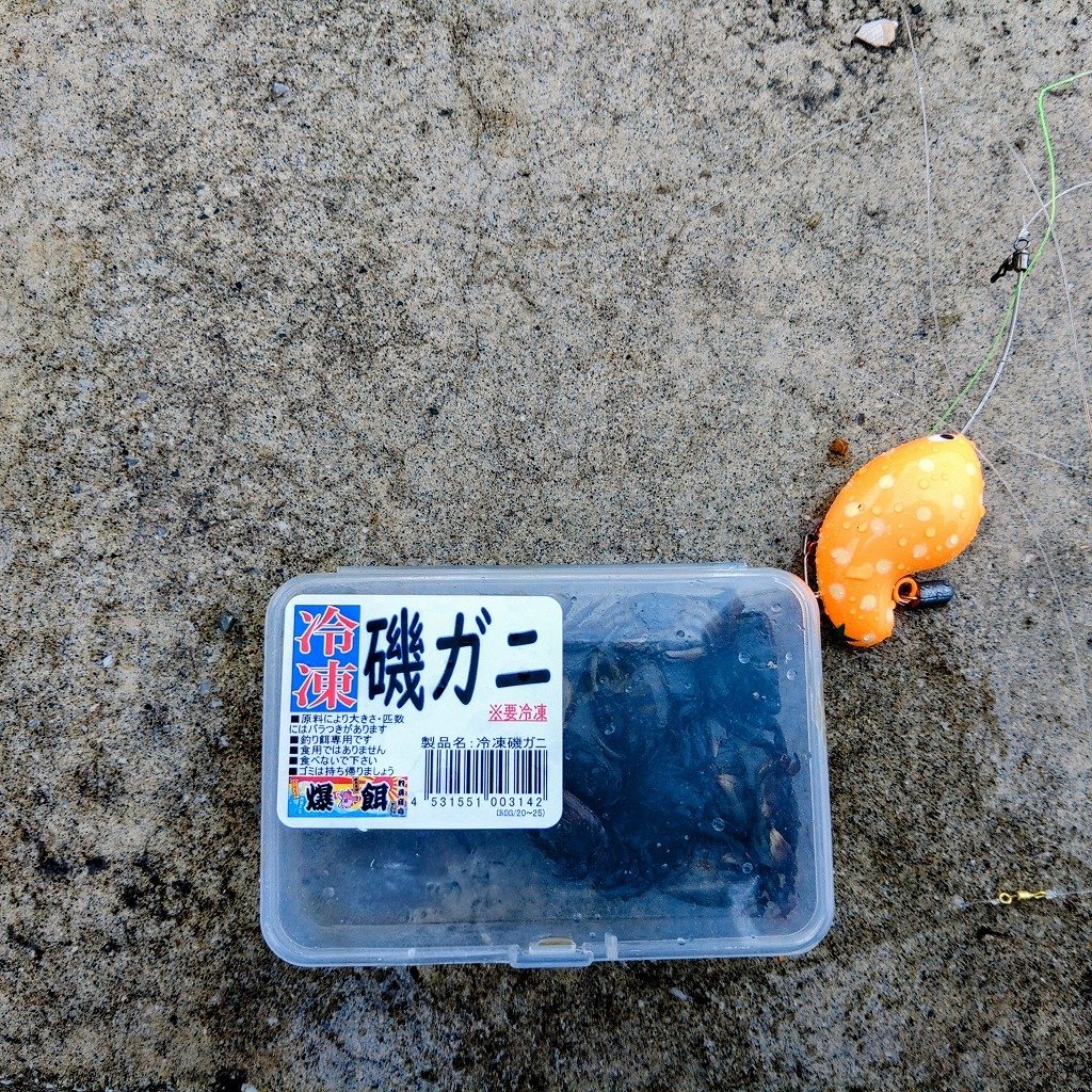 ■ロッド:9ft振出竿 ■リール:アオリ用リアドラグスピニング ■ライン:ナイロン4号 ■仕掛け:ふく式+針 ■エサ:冷凍磯ガニ