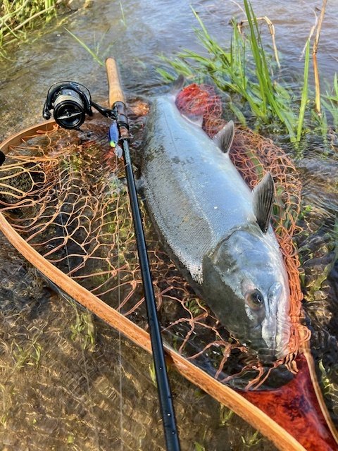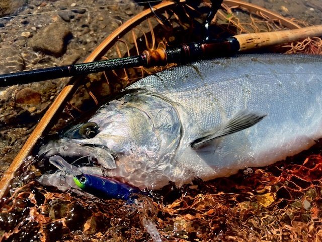 私はキープサイズのニジマスをランディングしてモタモタしてるうちに逃げられてしまい(あるある痛恨w)、その後は50cm未満が数匹という釣果でしたが十分楽しませて頂きました。