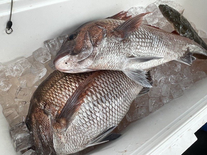 いつも通りライトタックルで足元を探り、もう1本の竿で沖の個体を狙いました!