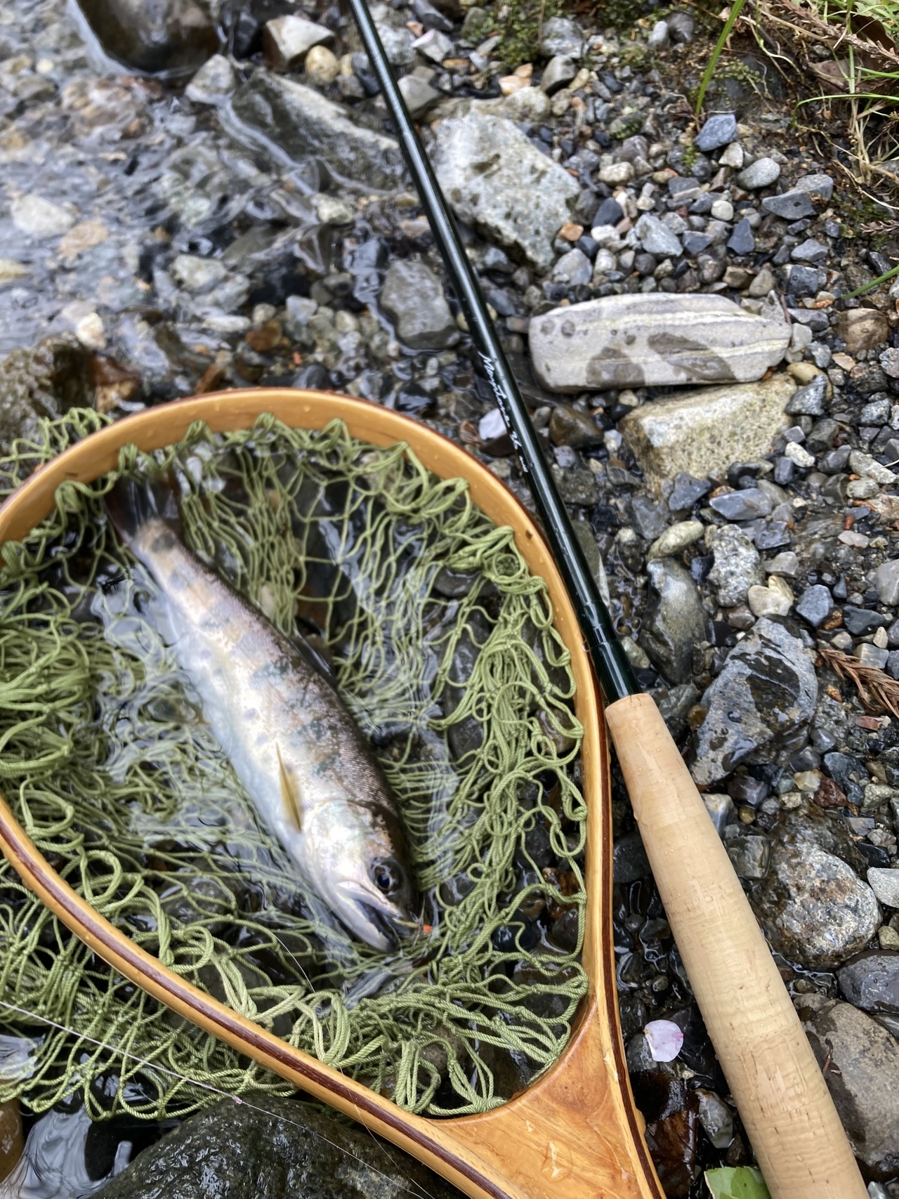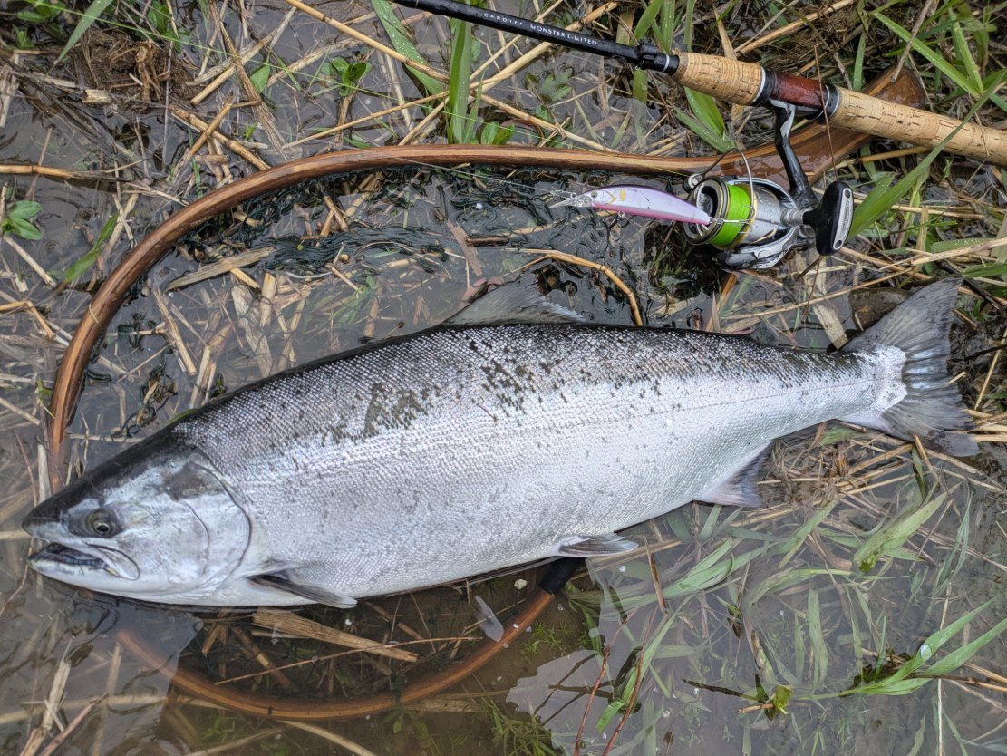 庄川サクラマス!シーズンですね。ということで、4/10に私も行ってきました。前回のバラシが悔しくて、同じポイントに再チャレンジ…。曇天小雨の雰囲気バッチリの中、ルアーを流すと数投目にバイトが!!前回の反省を思い出しながら慎重にファイト。で、何とかキャッチ!やった…。20年ぶりの庄川サクラマス…。うれしいもんです。ヒットルアーは前回同様トリコロールGT88MDF金沢ご当地カラー。来シーズン発売のプロトカラーですが、このカラーすごい…。ということで、またチャレンジしたいと思います!スタッフ西本