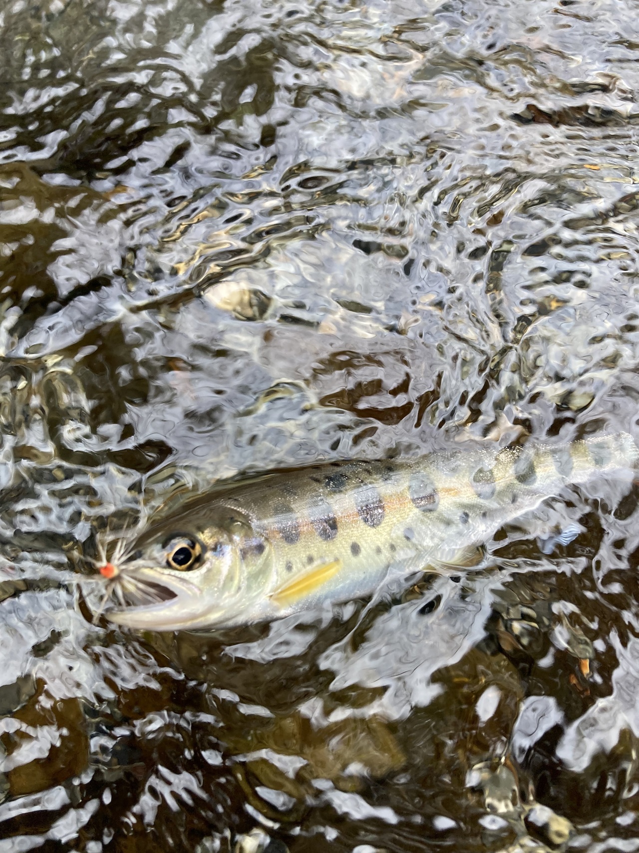 今シーズン初の黒川漁協管轄の小来川テンカラ専用キャッチアンドリリース区間へ。今回は下流域メインにやってみました。開けていてフラットな流れはヤマメもスレていてなかなか手強い!瀬の中の小さなスポットは天然の綺麗なヤマメが出てくれます。瀬の中はおそらく竿抜けとなっている様です。最初はこの時期この場所定番のゼンマイ胴グリズリーハックル毛鉤でやっていましたが、出て来ても食わなかったり、尾鰭で叩かれたりでしたが、クリーム系カラーの毛鉤に交換したところしっかりと食ってくれる様になりました。2時30分位の時間が1番活性が上がり楽しめました。