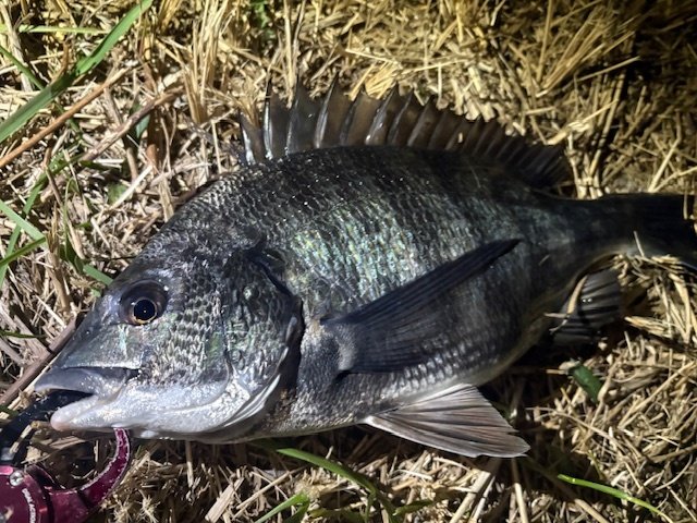 さあ着いた…ヘッドライトが無い…さすがにきついので取りに帰ります。3時間くらいの釣り予定なのでこの時間のロスは痛い…。と、30分以上無駄にしてしまいましたが気を取り直してカニを投入、一投、二投、…一時間経過…反応なし。年末の最後の釣行はアタリ貰えずだったので嫌な予感がしましたが、探り歩いたその先に、いました、可愛いサイズながら今年の初クロダイ。サイズうんぬんで嬉しい&ホッとします。が、続きません。ようやく2匹目をあげたところでタイムアップとなりました。サイズ・数は満足いきませんが、とりあえず初釣りで釣れてよかったですぅ。