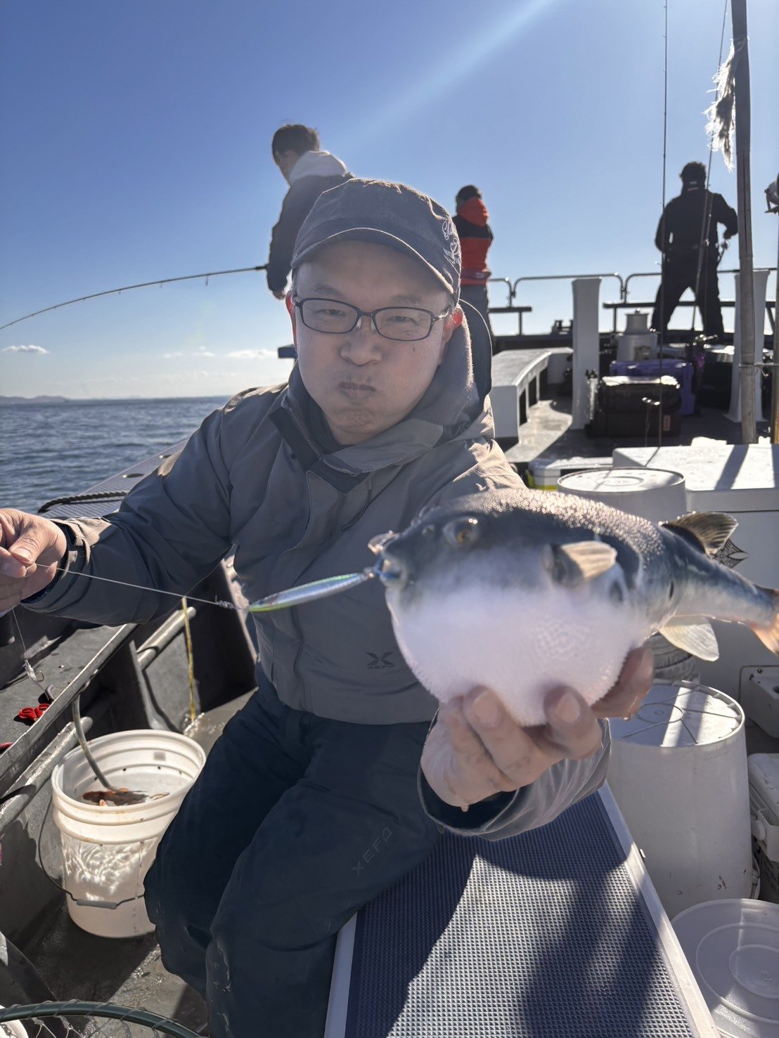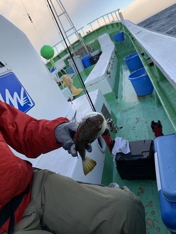 昨年に続き、今回も亘理・荒浜漁港の【第一良寿丸】さんに、ショウサイフグのカットウ釣りに行って来ました!当日は荒天で強風・荒波でしたが、釣果は終始安定で釣れない時間帯が少ない状況。前回の反省を活かし、根掛かりしない程度で底付近に仕掛けを安定させ、ウネリも有ったので大きな誘いはせず、終始細かい誘いでアタリ取りました。アタリが出なくなったらエサが無いか、仕掛け絡みなのでチェックします。アタリは明確と違和感なタイプがあり、結局合わせてみないと分かりませんが、合わせる時はしっかり合わせないとバレの原因になります。仕掛けは釣れている時は多少空振りは出ますが、手返し重視で1本鈎仕掛けがオススメ。エサはエビ・切身・アオヤギの3種を使いましたが、ピチットシートで脱水しエサ持ちも良い状態のエビが良い仕事をしてくれました。昨年の15匹を大きくクリアしたので、個人的には満足です。次回は天井の70匹が目標!