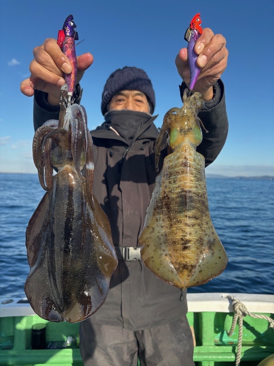食べて絶品♪美味しいアオリイカを求めて♪♪内房ティップランエギングに行ってきました。当日は前日から水温が約2℃急上昇。朝からイカの活性が上がらず、ランガンを繰り返しての拾い釣りでした。状況的には難しかったですが、シャクリ後のロングステイを意識していたお客様が竿頭。4ハイキャッチ♪お見事でした♪♪終日ポツリポツリとキャッチしていってストップフィッシングとなりました。水温が急変したタイミングで厳しい釣りにはなりましたが、この日の釣果は同行者5名で4・3・2・1・1と全員キャッチ。水温が数日間安定すれば、まだまだ楽しめそうです。※タックルセッティング・ラインシステム・シンカーやエギのチョイス等々。お気軽にご相談下さいませ。