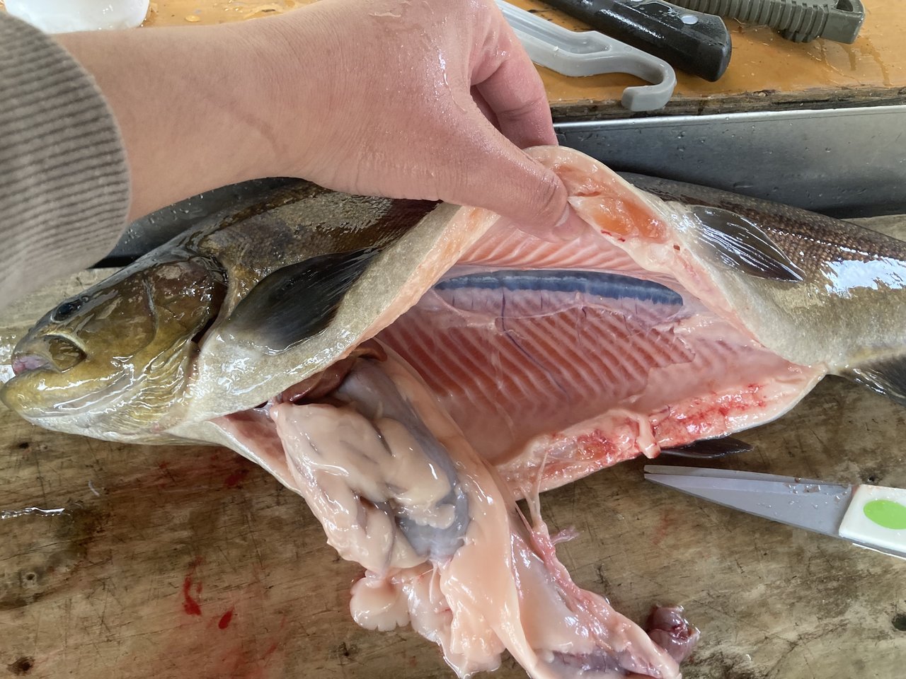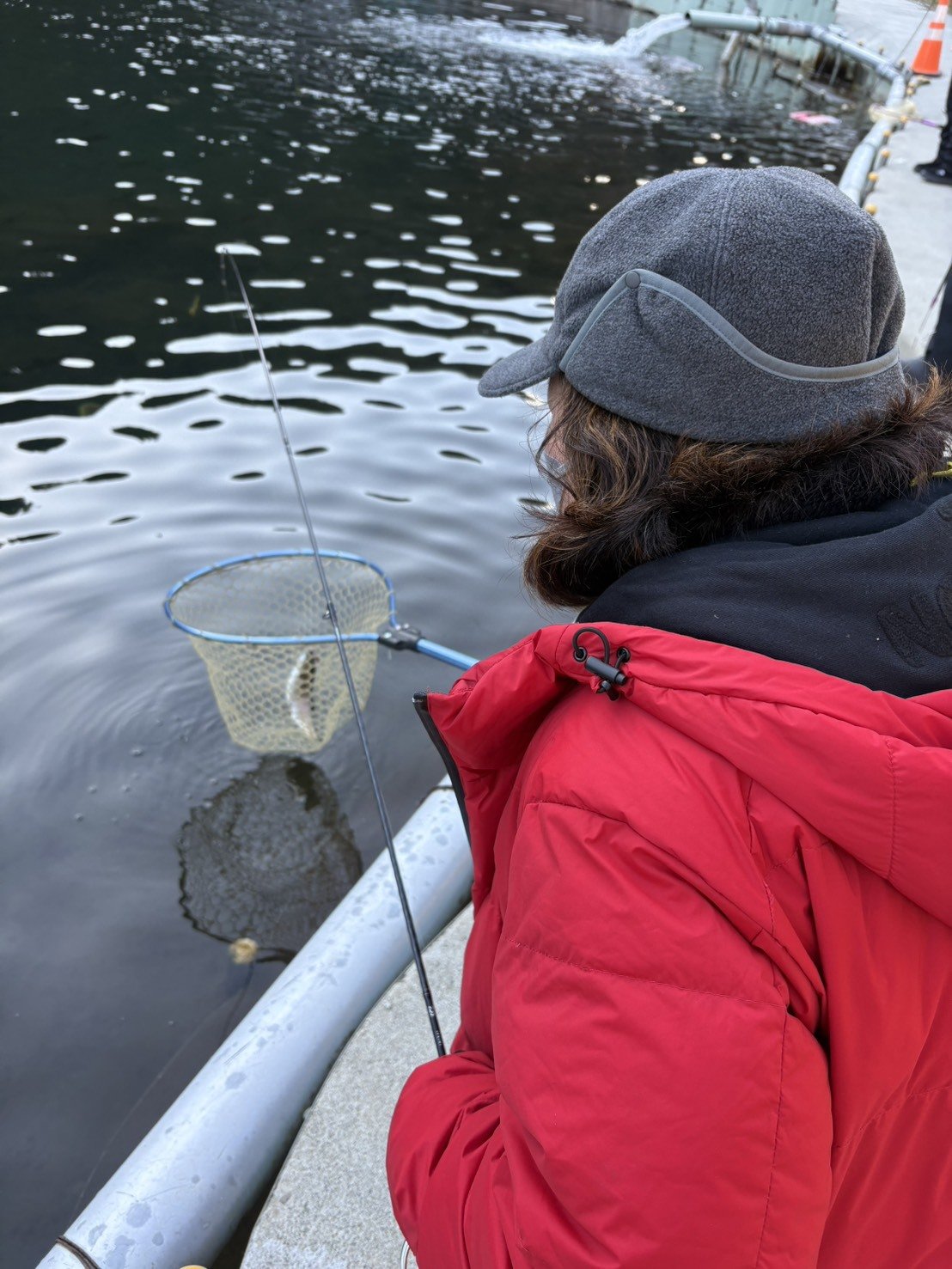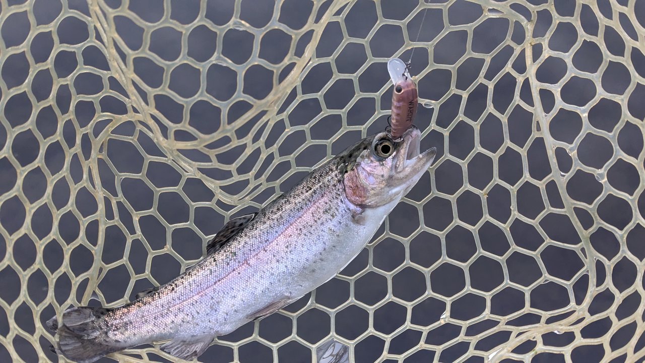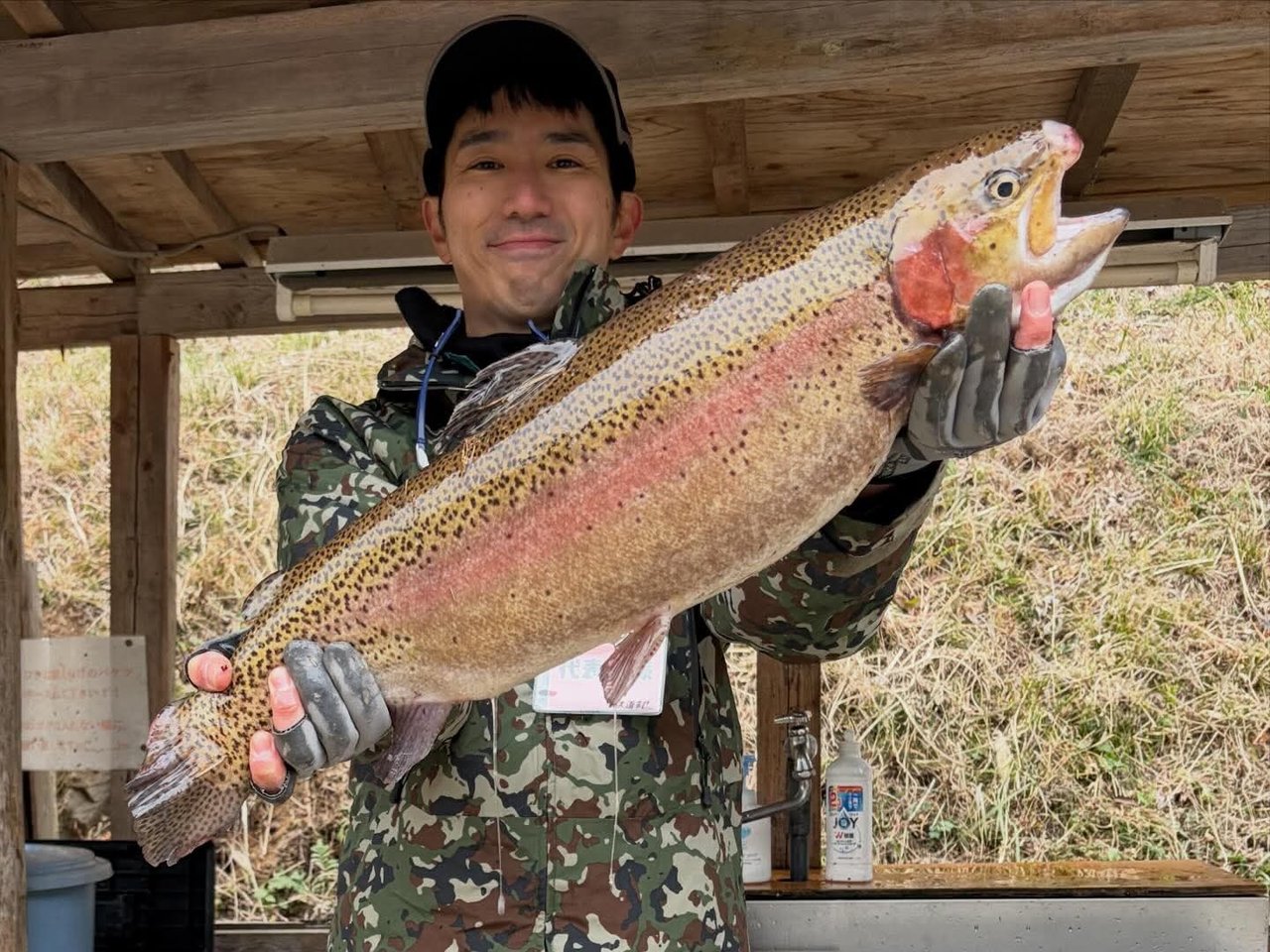 魚影の濃さを感じつつ放流で活性が最高潮になるとスタッフ鈴木がジャーク系で大型マスをキャッチ!
