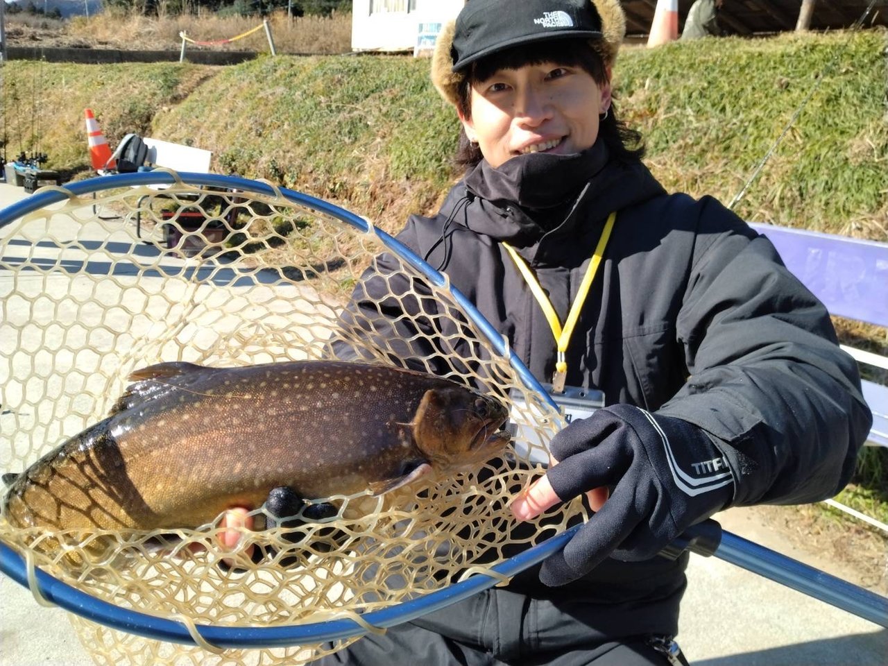 朝からえ込みが厳しく、魚の活性は???やはり、最初の2時間は悶絶タイムもありましたが時間が立つにつれ、ポツポツと釣れ始めました。朝方は活性が低く、ボトム付近で拾う釣りが多かったです。日が当たり始める位から、中層から表層近くで大型マス(頂マス・驚ロック)が釣れ始めました//クランクベイトやニョロ系、MJ系だったり各々ルアーが違ってましたが反応良くポツポツと全スタッフで6匹とスゴイ釣果でした//当店、長谷川店長も見事当日ビッグワンサイズを釣ってました・・・詳しくは、店長の記事をご覧ください//