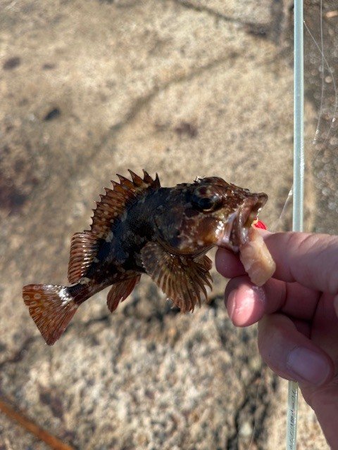 同行者は色々なエサを試していて2匹も釣っていたのにね