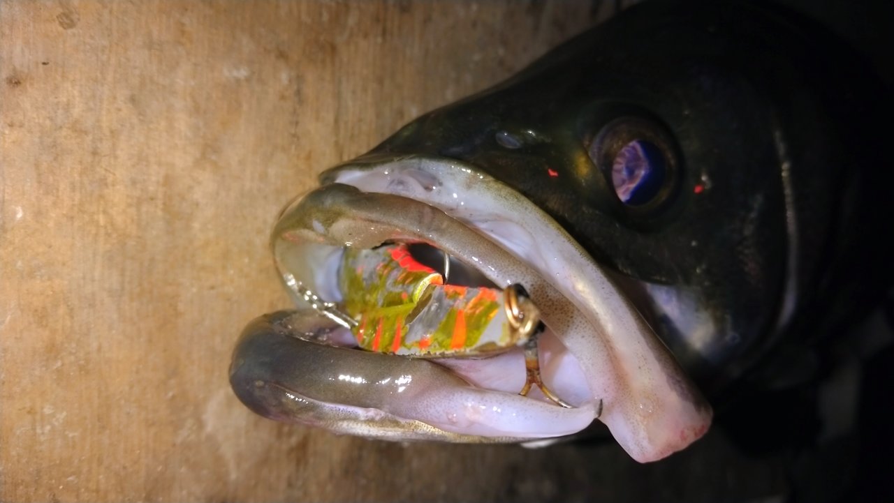 21:00で常連さん撤収。まだ2時間は流れると、最後のタイミングに期待して、21:30くらいに、ベタでイマイチ筋のありかが不明も、この潮位ならココに居るハズとIP26を入れると居た!