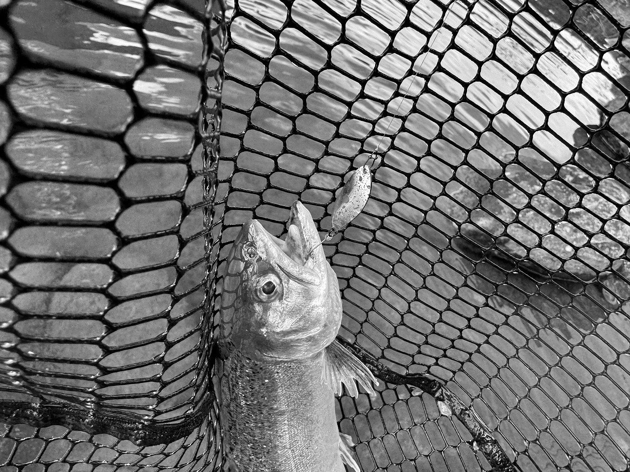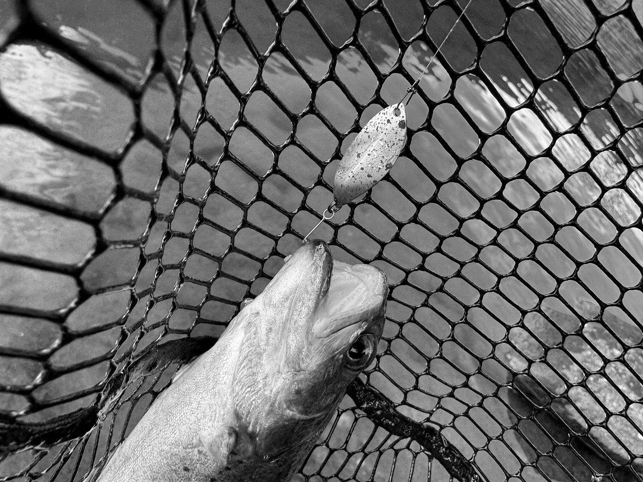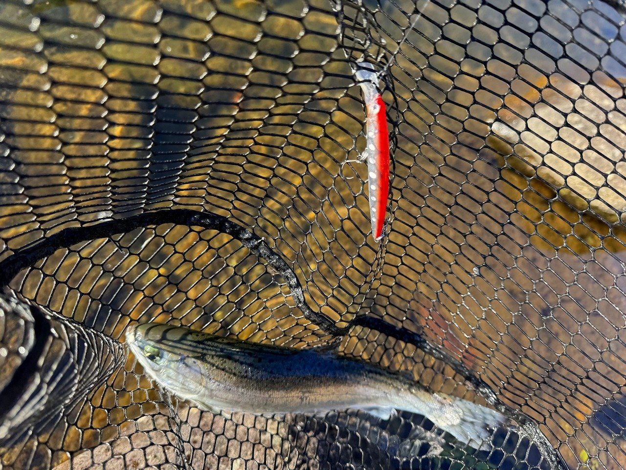またもや「川越水上公園」です。今期は工事の為、多目的プールのみ、午前と午後の部、各定員40名となっておりますのでご注意下さい。朝の気温は3℃、曇り予報でローライトなので期待大です。水質は超クリアで6時の暗いなかでも手前の底の白線がはっきり確認できます。スタートはいつも通り【バベルエース0.7g】ほぼ真っ暗なので[ホワイトデビルVer.Ka]です。着水後そのままゆっくり巻いてくるとすぐにアタリ、無事キャッチです。暗いうちは同じパターンです。陽が出て明るくなると更にビックリ。先にも書きましたが、水が超ドクリアで沖の白線まで全部見えます。ただ逆にクリア過ぎて難しくなるパターンです。凄い見切られます。動きの無いゆっくりパターンが効かなく、動きのある系の方が前日の放流効果もあり反応良さそうでした。もう少し濁っていた方が釣りやすいんですけどね~。ただ魚も丸見えなので、それはそれで面白いんですけど。