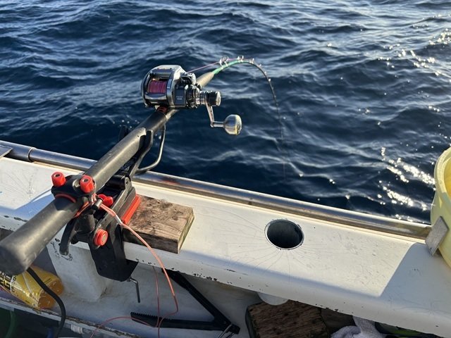 ■ロッド:シマノ 22セフィアXRメタルスッテ B66UK-GS ■リール:シマノ 25バルケッタ Fカスタム150DHXG ■ライン:PE 0.4号 ■リーダー:フロロ3号 ■エサ:ボーズレス TGハットリ15号 ■ドロッパー:ヤマシタ スクイッシュ 7-1