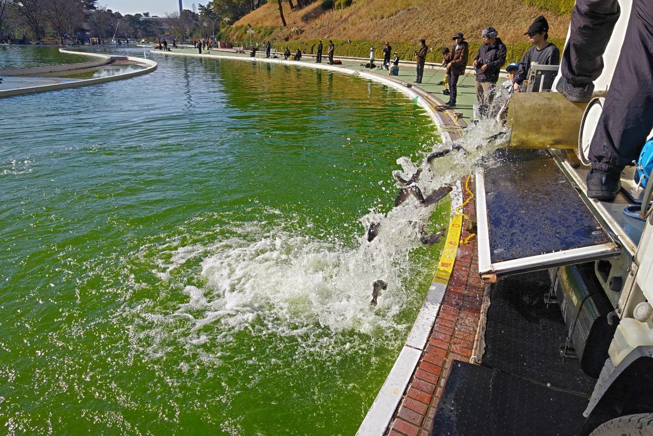 今回は【多摩湖駅前フィッシングエリア】に釣り収めに行ってきました。水色が前回同様で緑がかっていて魚影は確認できませんが良い雰囲気の水質です。さらにこの日は放流もあるという絶好のチャンスデーです。スタートはバベルエース0.7g【赤いホワイトデビル】で着水と同時に巻き始めると、1投目からアタリがありますが乗せられず。2投目でもアタリがあり掛けますが手前でバラシ。良い感じのスタートでしたがそこからが…。アタリはあるのですが乗せられず、掛けてもバラシの連続。やっとキャッチできたのが開始1時間後ぐらい。後で話を聞いたのですが、「最近は陽が出てしばらくして水温が上がってからの方が良い】との事。その後はなんとかポツポツと釣れる様に。11時頃には放流トラックが到着、水合わせ後に放流されましたが恩恵無しです。放流後すぐには仕事してくれません。放流後2~3時間経つと釣れ始めるという。夕方以降がチャンスだったのですね。その後も状況は変わらず集中力も途切れそのまま終了となりました。多摩湖駅前フィッシングエリアは年末年始も営業しております。