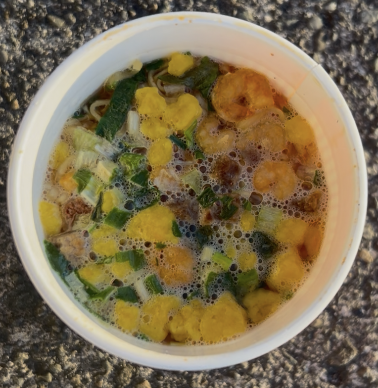 寒い時間帯に超爆風の中、カップラーメンを・・・。