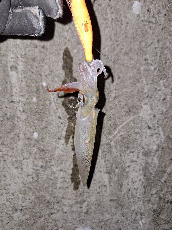 到着してみると風は強かったですがまだ釣りになる状況。キーストンのエサ巻きエギに塩ささみを巻いてスタート!開始後しばらくすると早速小さいながらもヤリイカゲット!さらに続けてもう1杯追加!もうちょっと大きいのが欲しいなぁと思って頑張って沈めてしゃくっているとしっかりとした重みと共にいいサイズのイカが釣れます。今日は良い日か?!とテンションが上がりますが時合いが過ぎたかアタリが遠のきます。しかしながら時合いがくればまだまだ釣れる!と奮起して投げ続けますが次第に風が強風になり、爆風になりもう何をやっているか分からない状況に。。。悔しい思いを胸にヤリイカ釣りは終了。朝まで仮眠して外浦へシーバス狙いへ。しかしながら風は収まらず2時間程は頑張ってみますがこちらも不完全燃焼でしたが諦めて納竿。。。