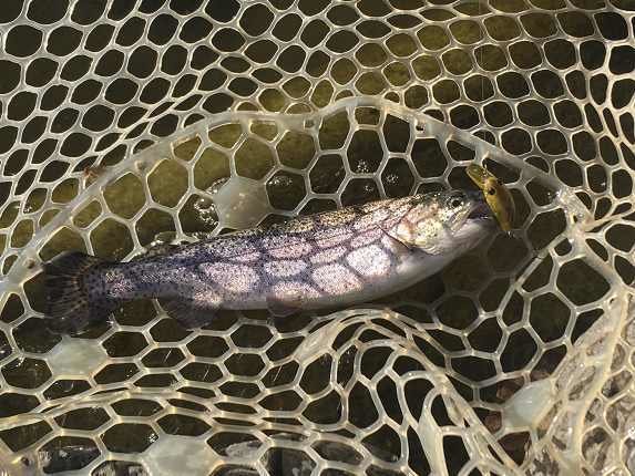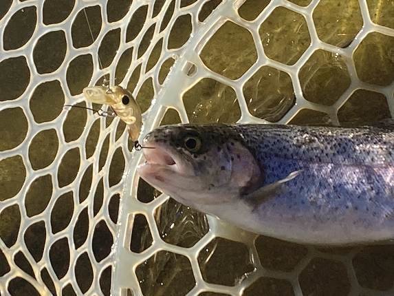 気温は極寒でしたがアジはまだ接岸しているようで、ポツポツとアタリが有りメバル混じりにキャッチ。ただ、この日はフグの活性がやたら高くアピールの強いグローやUV発光では一投目でズタボロにされることもしばしばで、光らせてアジに気づいてもらうというより、ただのクリアラメをフグを避けながらアジの目の前に届けるイメージで操作するのが良かったようです。