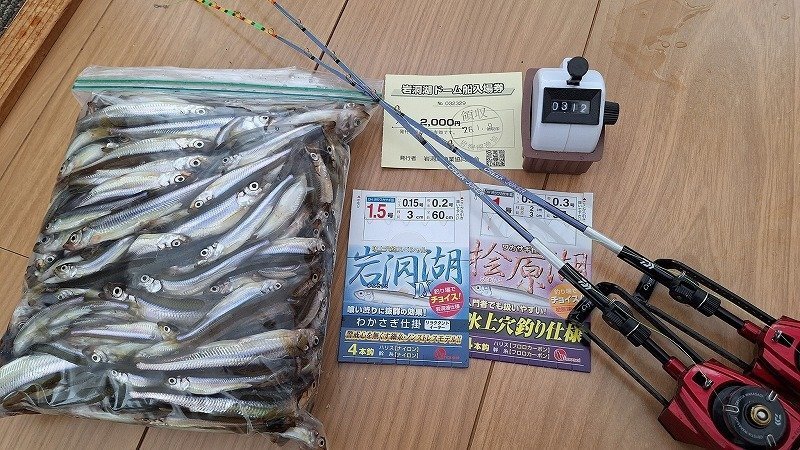 河口湖漁協のドーム船にワカサギ釣りに出かけてきました。この時期の河口湖ではワカサギの群れが固まって大釣りが期待でき、竿1本でありながら10束超えの釣果も出ている状況です。朝イチは湖底から3~4mの層にワカサギの群れがビッチリで、6本針に仕掛けに3~4点掛けは当たり前の状況。1時間弱で150匹近い釣果となるも群れは抜けてしまい、その後2時間ほど沈黙。その後再び群れが入り、しばし爆釣タイム。午後2時半の納竿までその繰り返しで、その間5回ほど群れが入りました。いかに多点掛けさせてから仕掛を回収するかが重要で、1匹1匹を拾っていく釣りと比べると同じワカサギ釣りでも全くの別物と言った感じです。