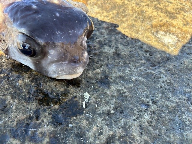 足元に潜む根魚を狙おうと探り釣りを行うもフグのオンパレード・・・。