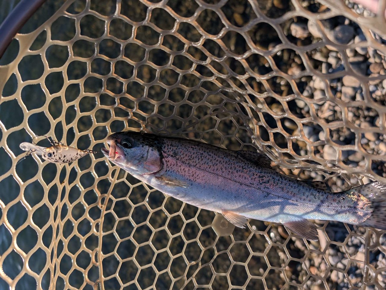 4号池のインレットでプレミアムX0.5gを流れに乗せて流すと一投目からアタリが!!同じようにルアーを入れると入れ食い状態に!!