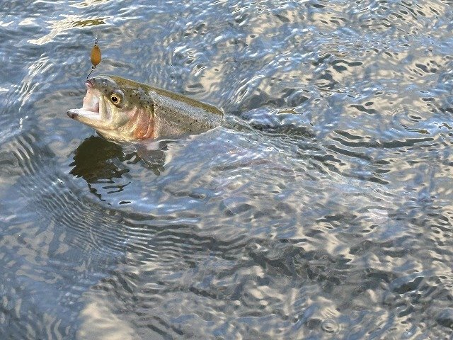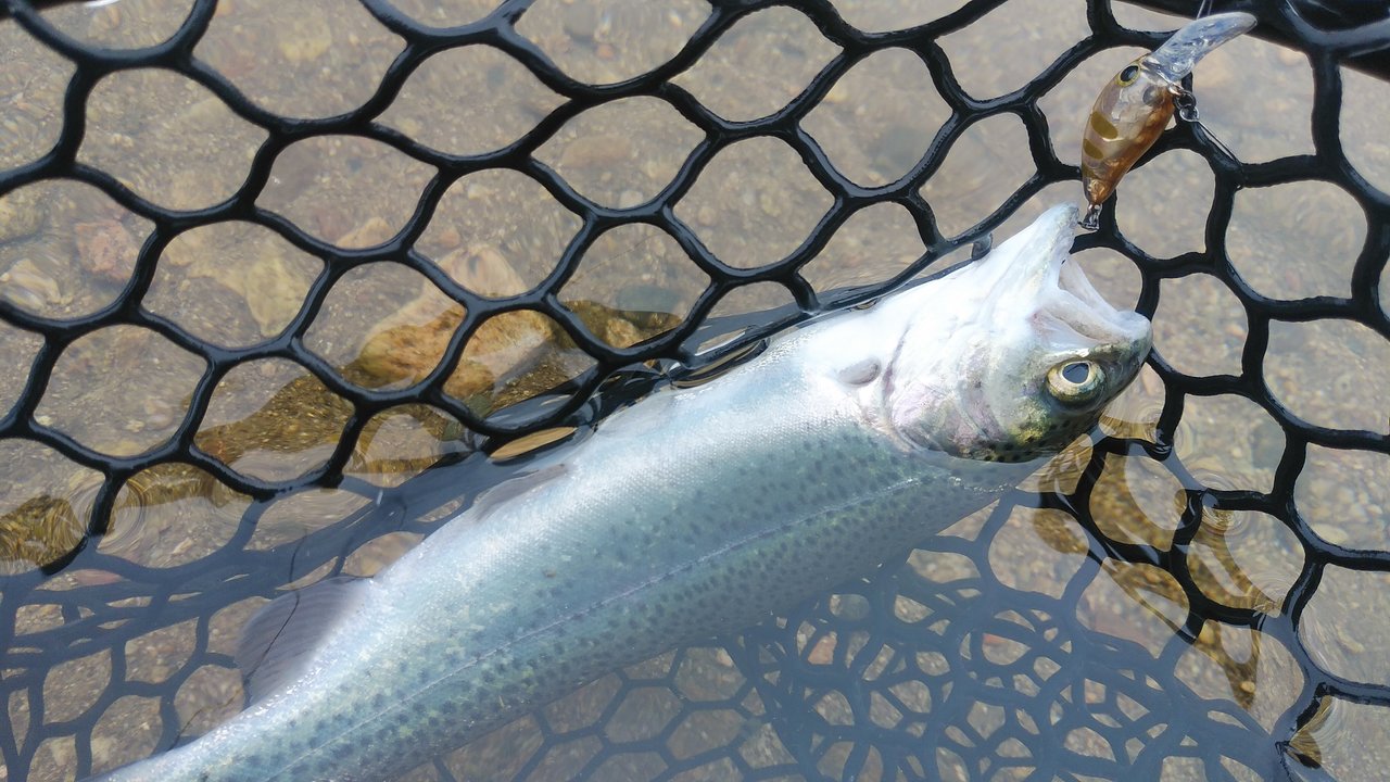 前日の雪と朝の冷え込みでスロースタートでしたが、気温が上がった午後からはミノーやスプーンでいい感じに釣れました。
